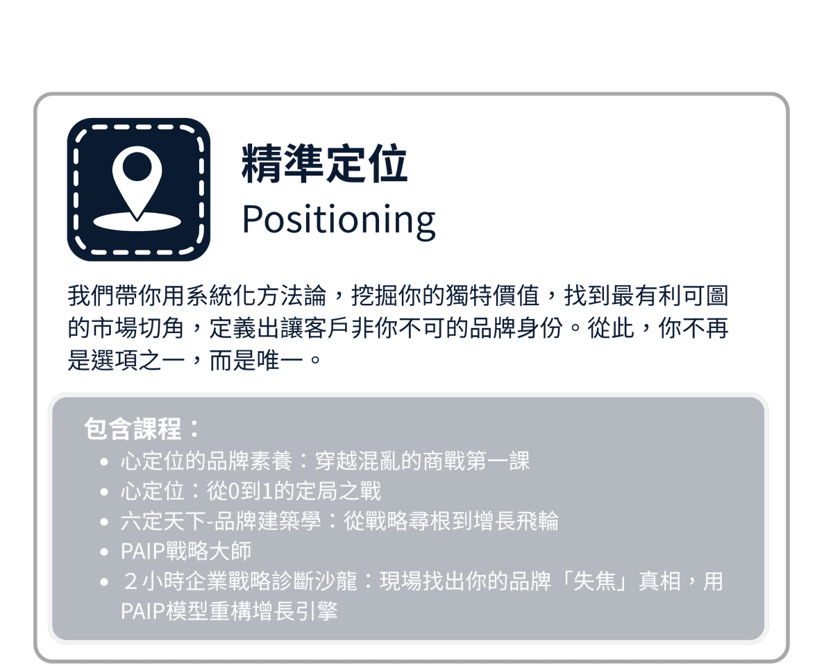 加入即解鎖專為「定位創業者」設計的實戰工具包